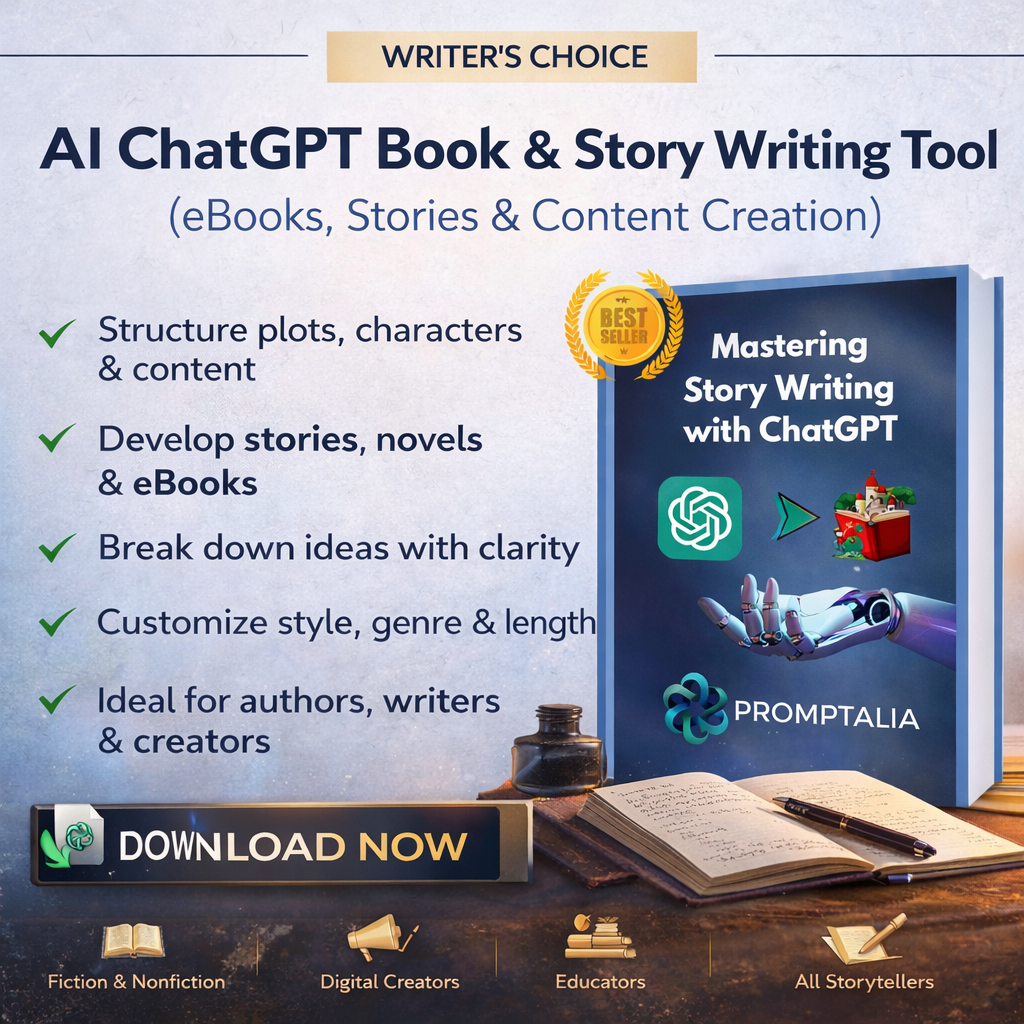 Create high-quality stories, eBooks, and long-form written content faster and with greater clarity using the AI ChatGPT Book & Story Writing Tool. This professionally designed writing framework helps you transform ideas into well-structured, engaging narratives with depth, emotion, and clear direction.